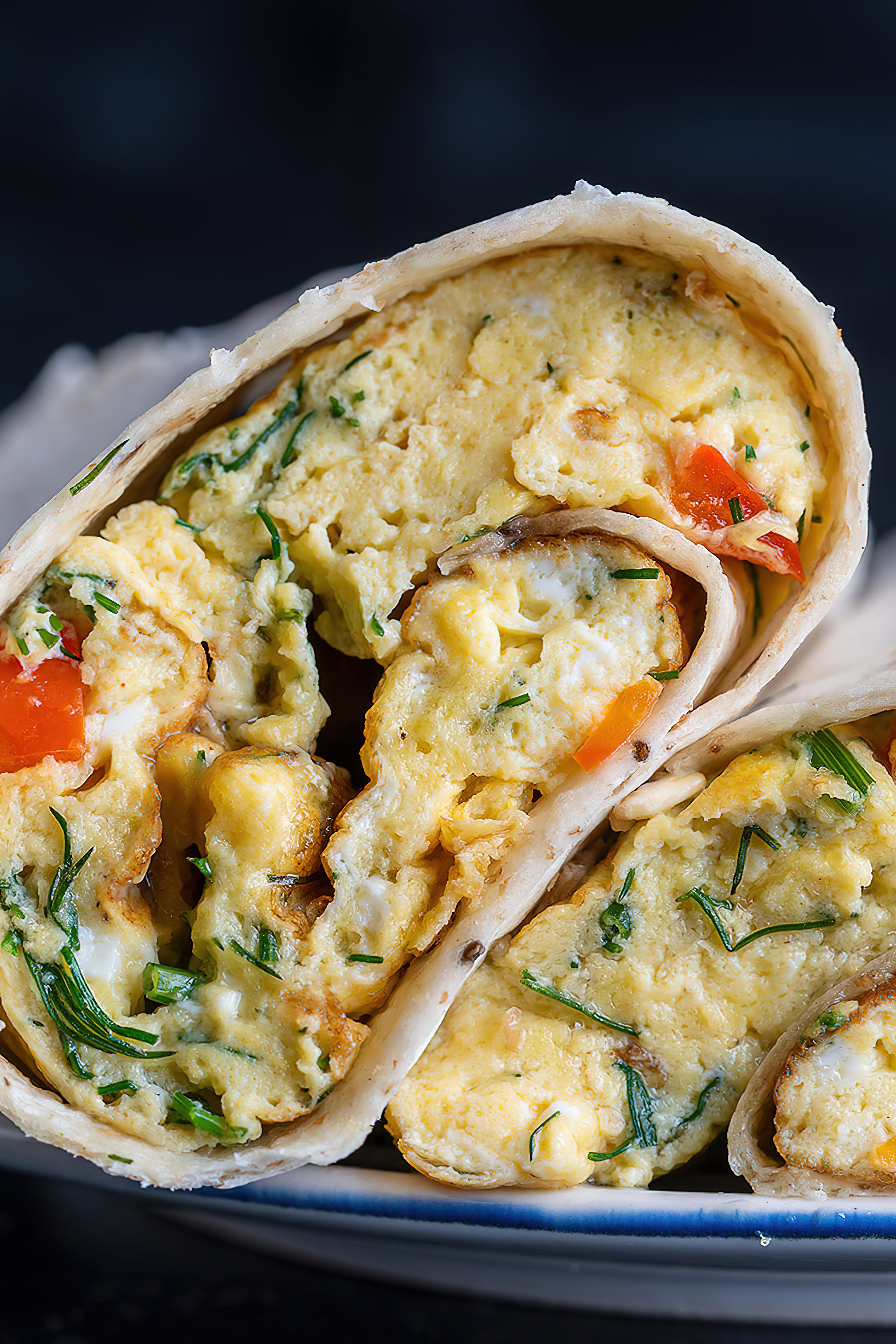 - Platziere das Omelette auf Wunsch in dem Wrap.